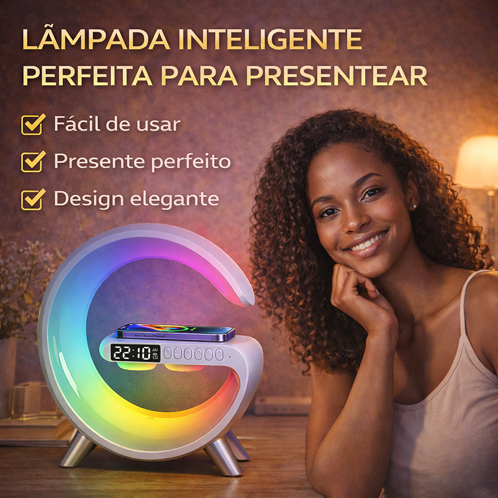 Coluna Bluetooth Inteligente G com Luz Ambiente e Carregamento Sem Fios