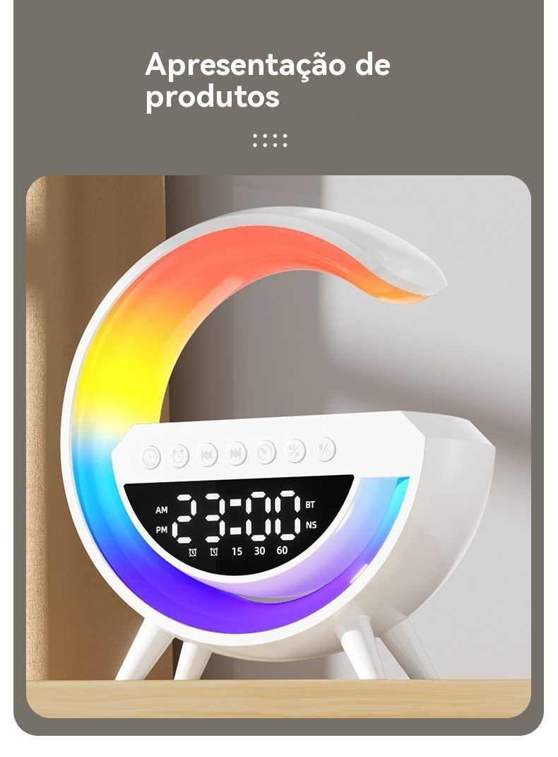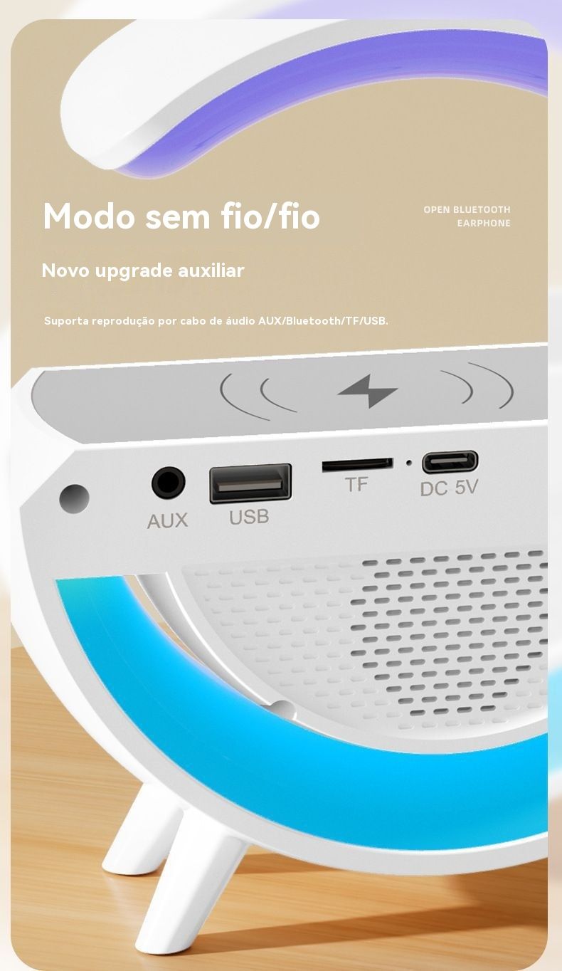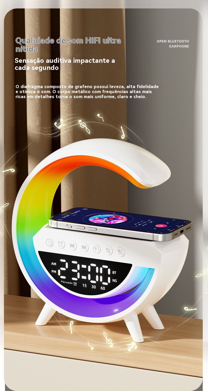 Coluna Bluetooth Multifuncional 3 em 1 com Carregamento Sem Fios