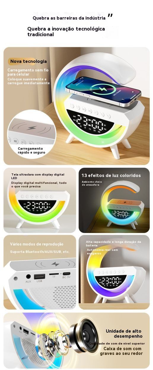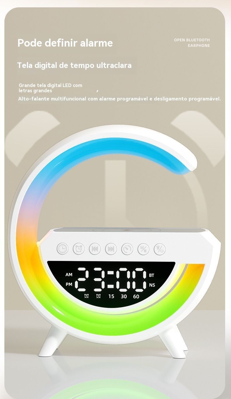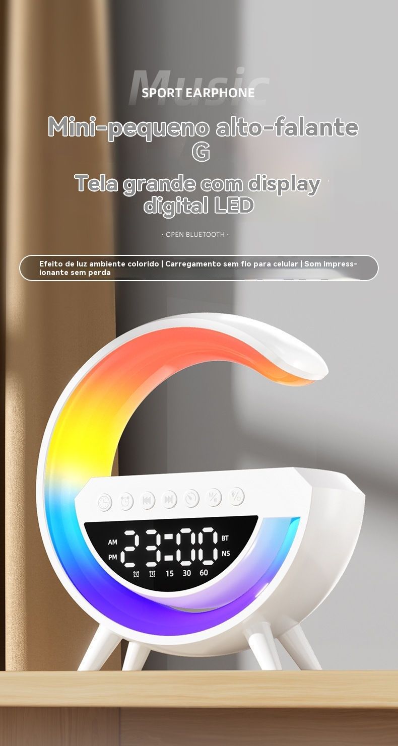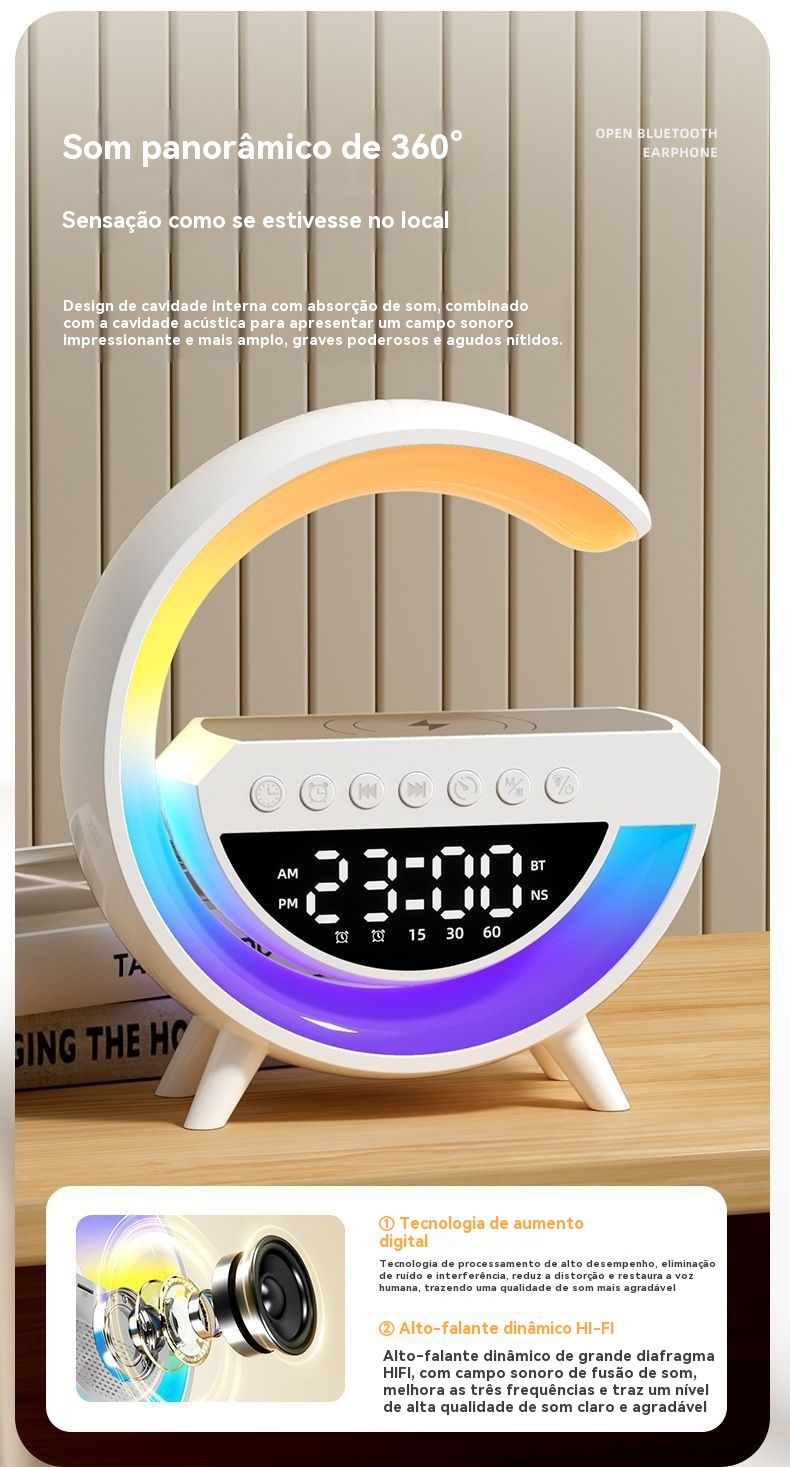 Coluna Bluetooth Multifuncional 3 em 1 com Carregamento Sem Fios