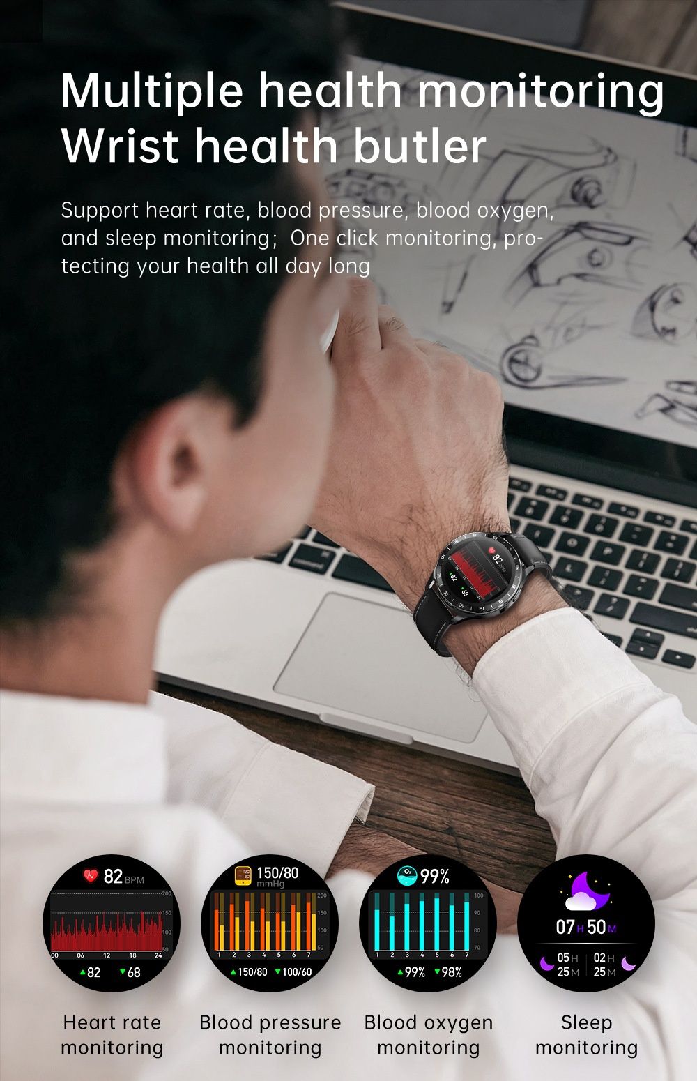 Monitoramento inteligente de saúde, atividade e sono.