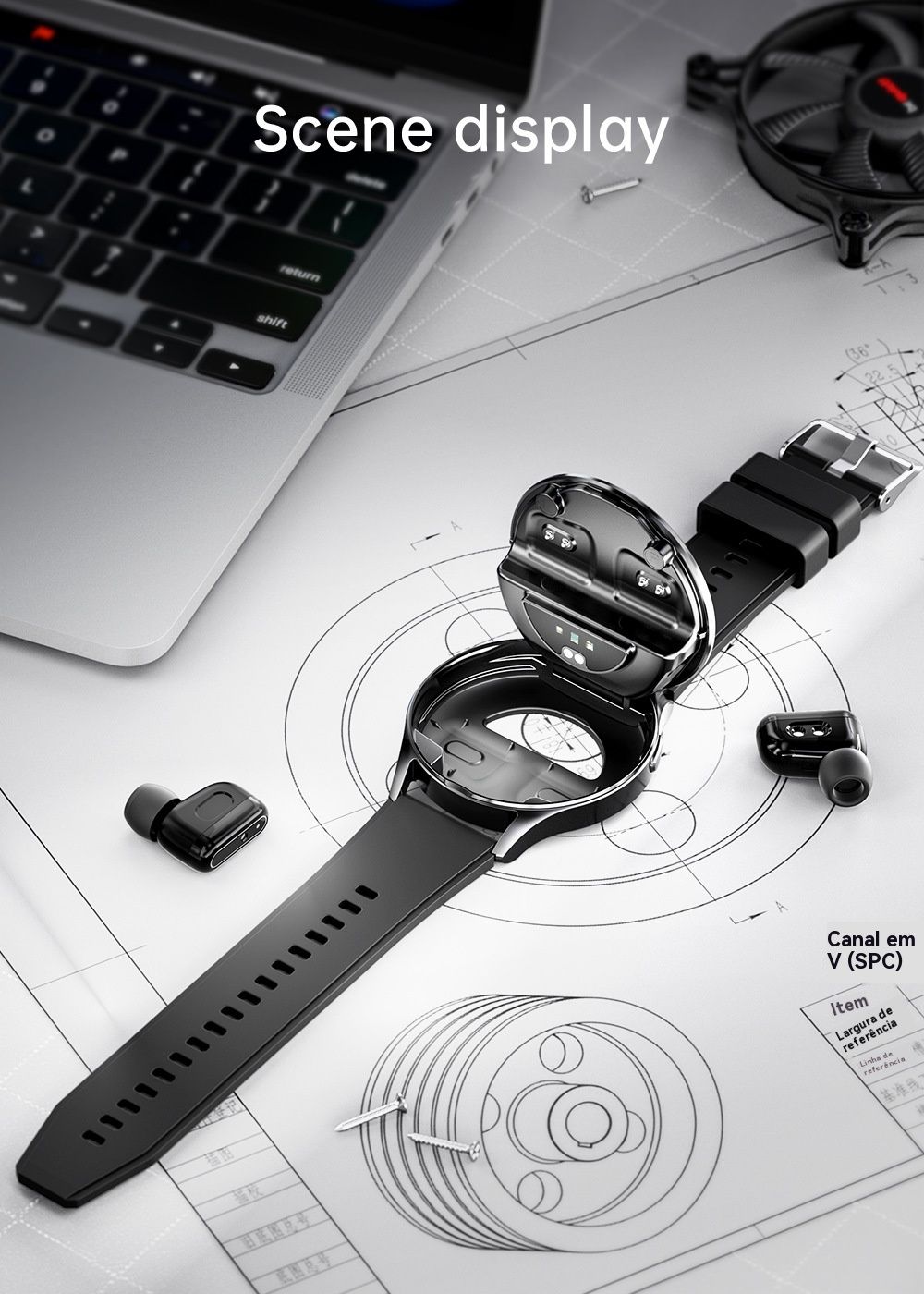 Design moderno, bateria de longa duração e carregamento sem fio.