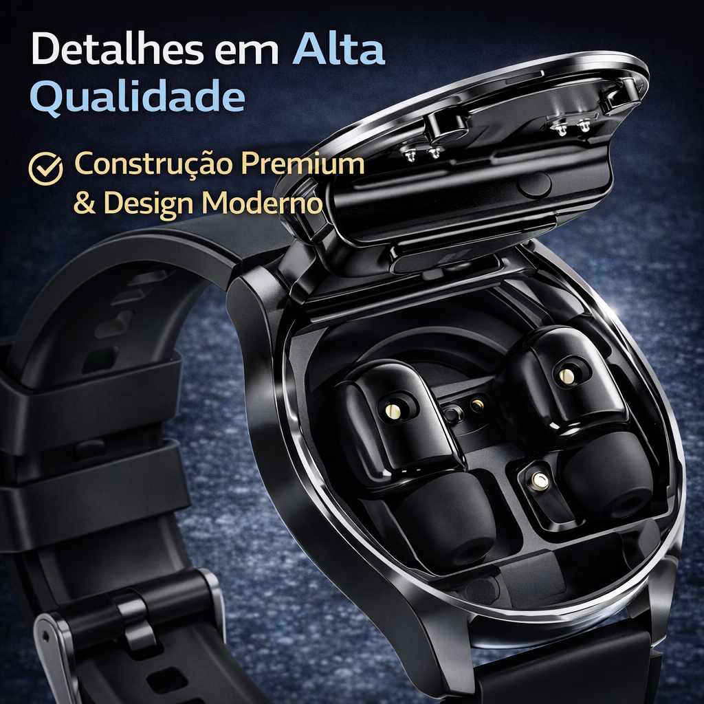 Relógio Inteligente com Chamadas Bluetooth e Fones Integrados – Prático, Moderno e Completo