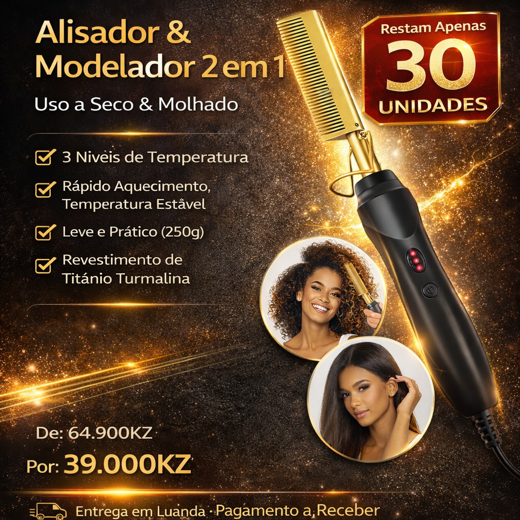Alisador & Modelador 2 em 1 – Uso a Seco e Molhado