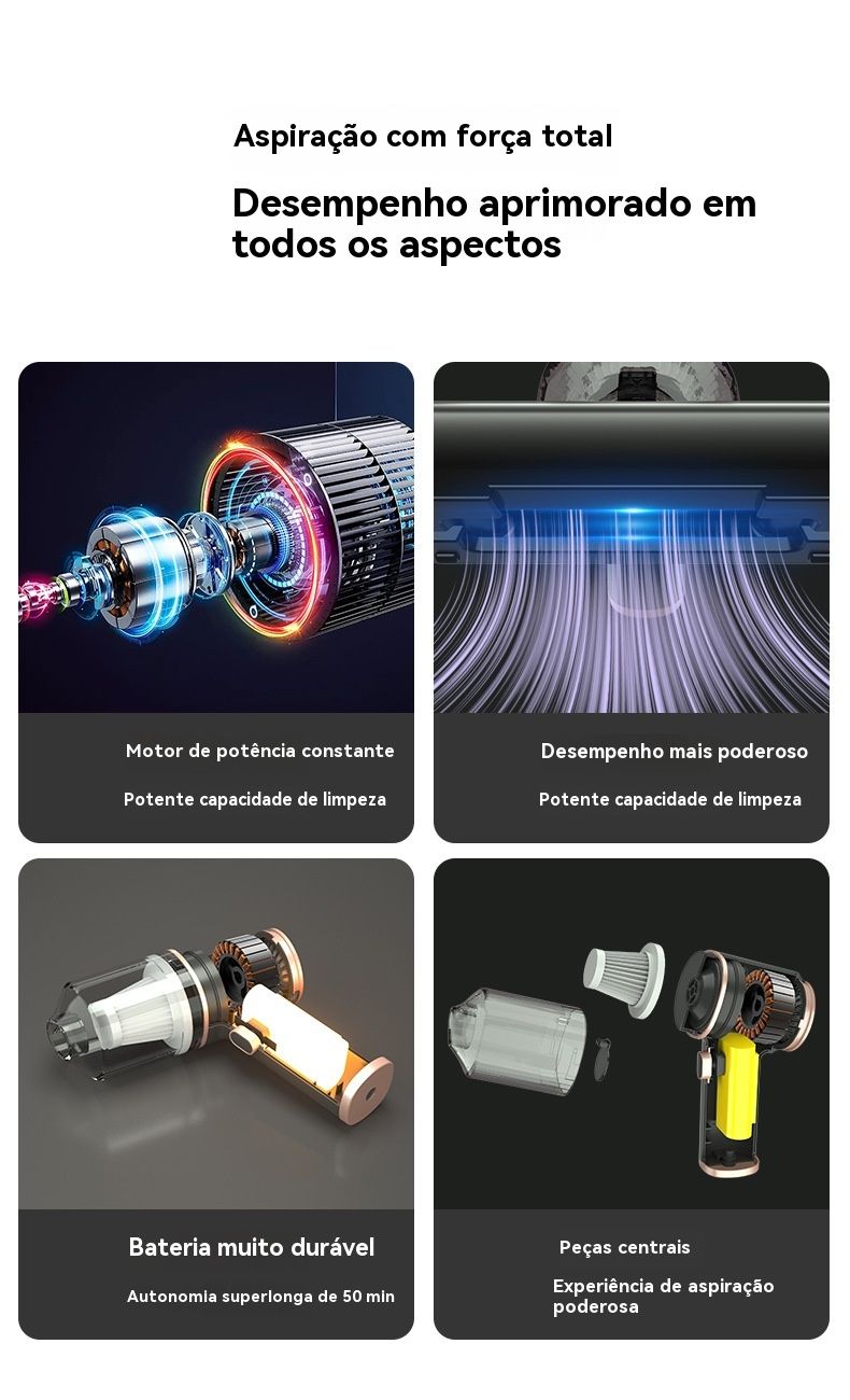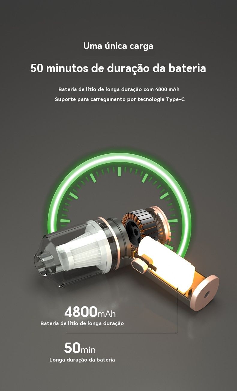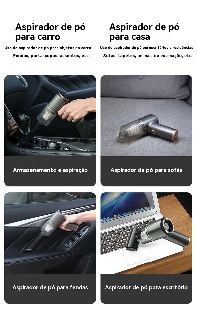 Aspirador Sem Fio Mini Portátil Para Carro E Casa Alta Sucção Recarregável