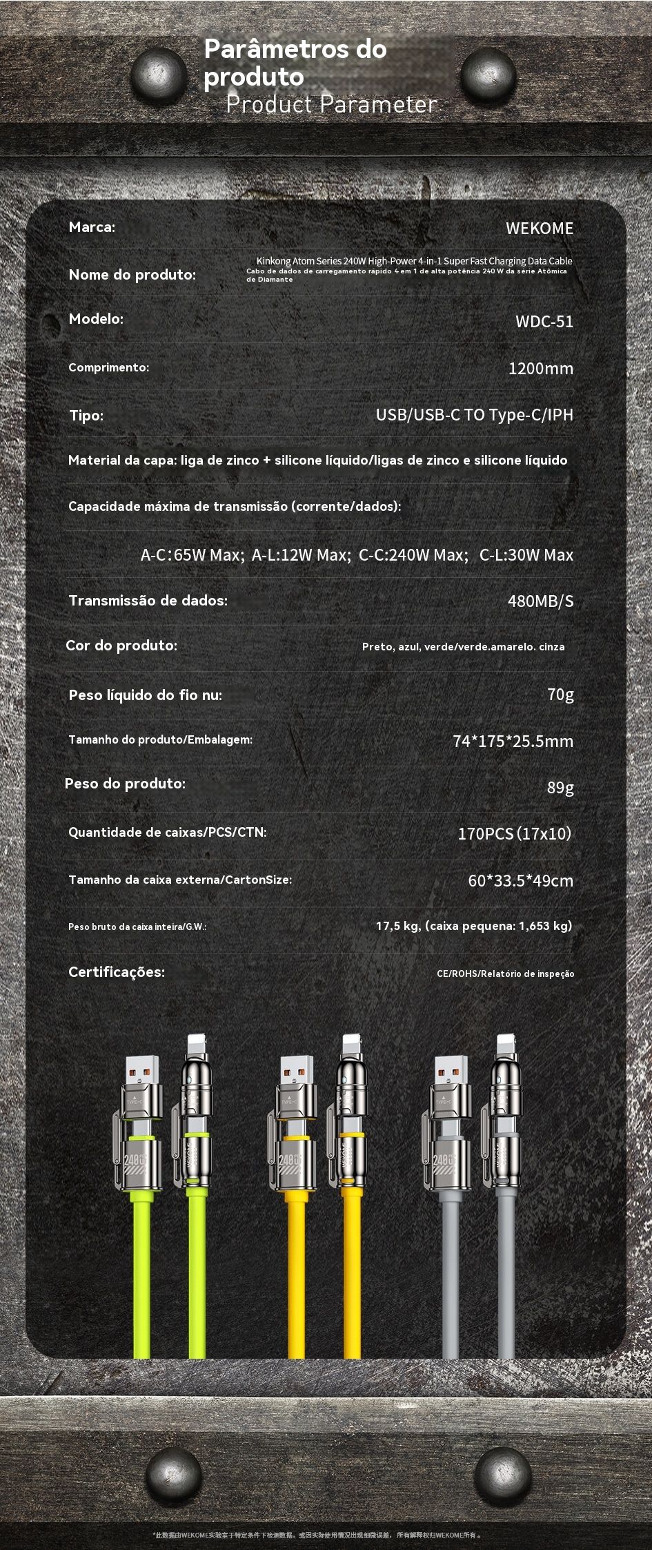 Um cabo. Quatro soluções. Carregamento super rápido até 240W.