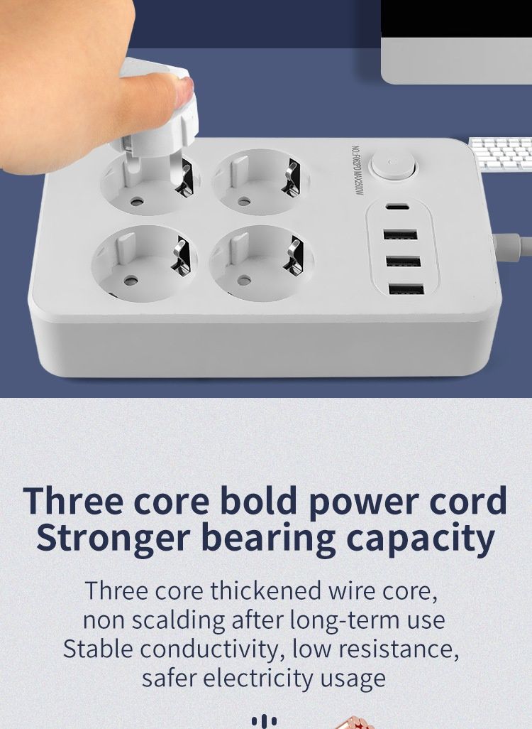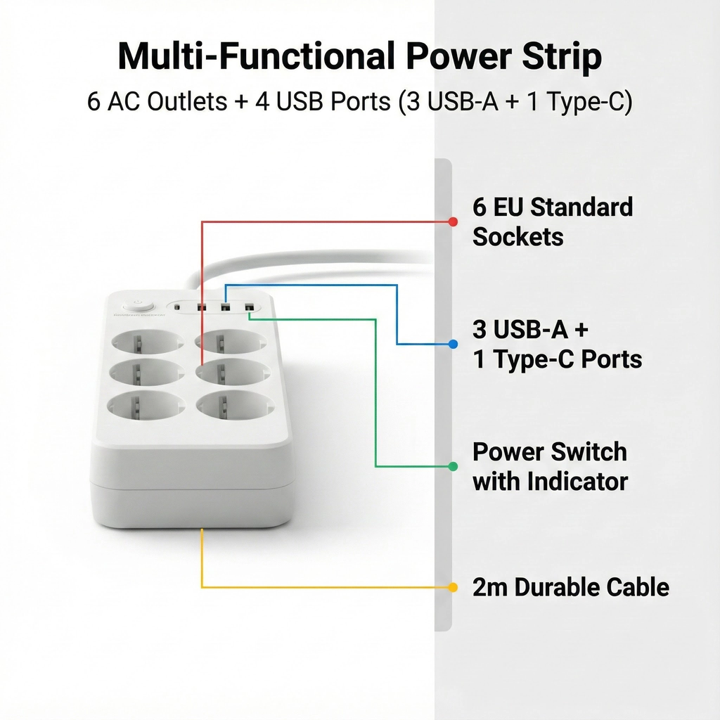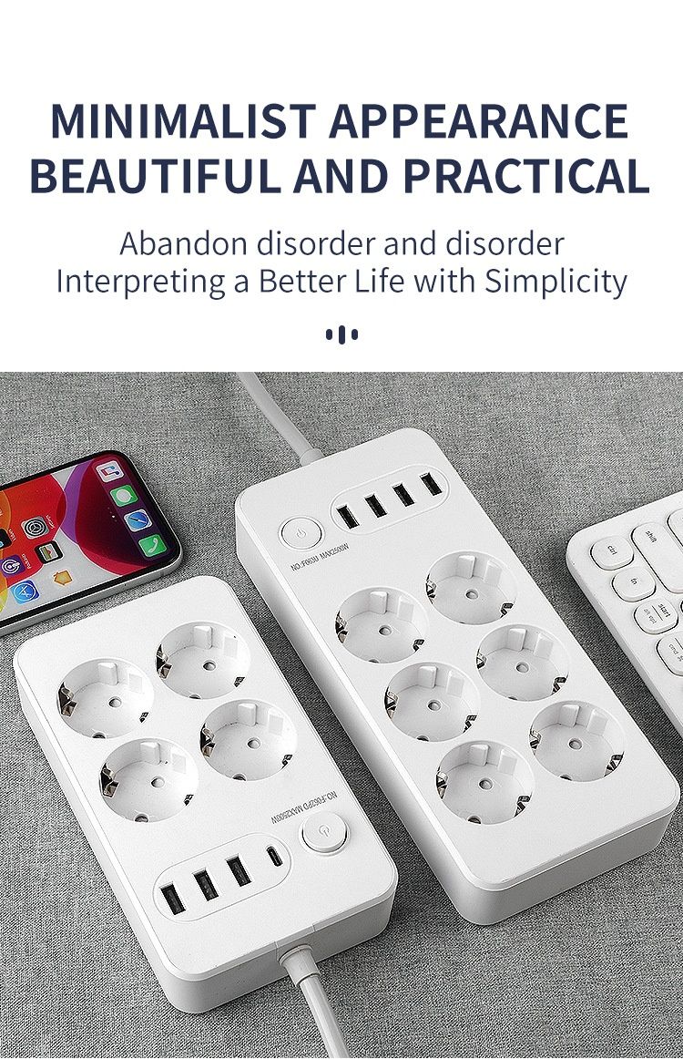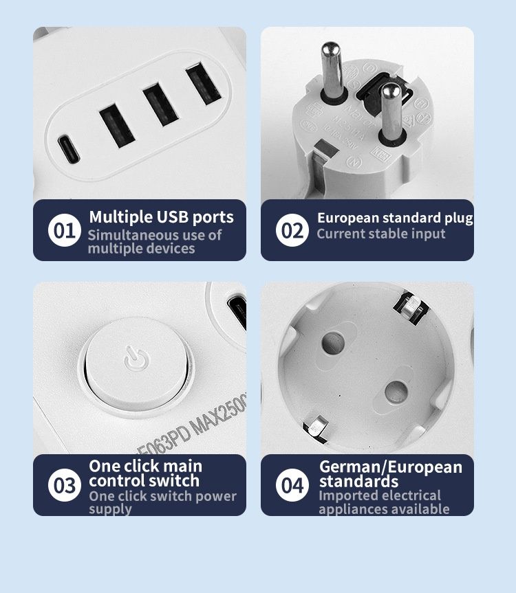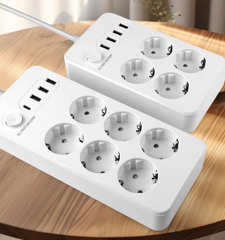 Extensão Elétrica Europeia com USB Interruptor Principal Cabo 2 Metros